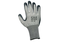 popis / rukavice pletené polomáčané, bezošvý úplet zo zmesového vlákna DYNEEMA / nylon, vysokáodolnosť proti porezaniu, dlaň a prsty povrstvené šedým polyuretánom |