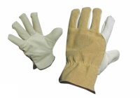 popis / kombinované rukavice zateplené plyšom, dlaň z hovädzej štiepenky, chrbát z bielej látky, pánske |
