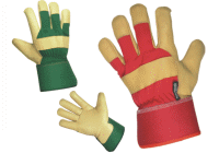 popis / kombinované rukavice zateplené podšívkou THINSULATE, bravčová lícová koža, chrbát z jednofarebnej látky, dámske (červené - 9") , pánske (zelené - 10") |